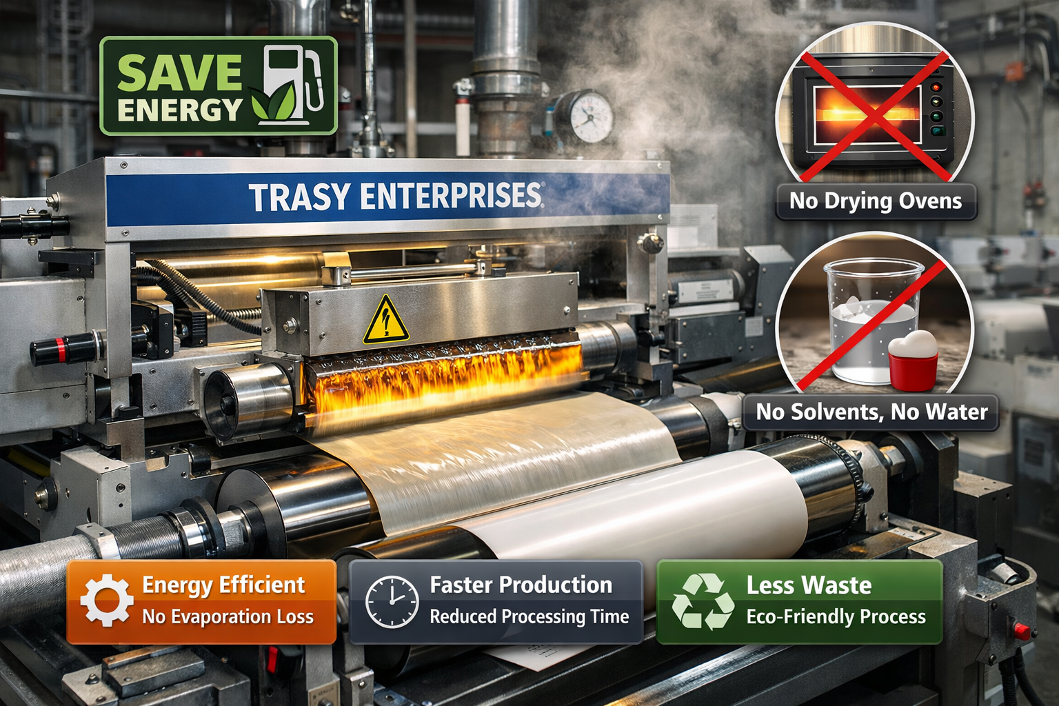 In times of fuel and energy shortages, the most practical and immediate solution is conservation. Industries must adopt processes that minimize energy consumption while increasing efficiency and output quality. One such solution is the use of hot melt coating technology, especially with machines manufactured by Trasy Enterprises.